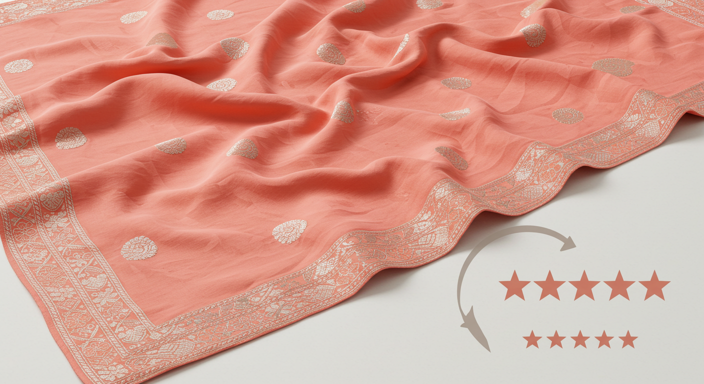 Lightweight, breathable sarees in soft fabrics and fresh colors — ideal for...