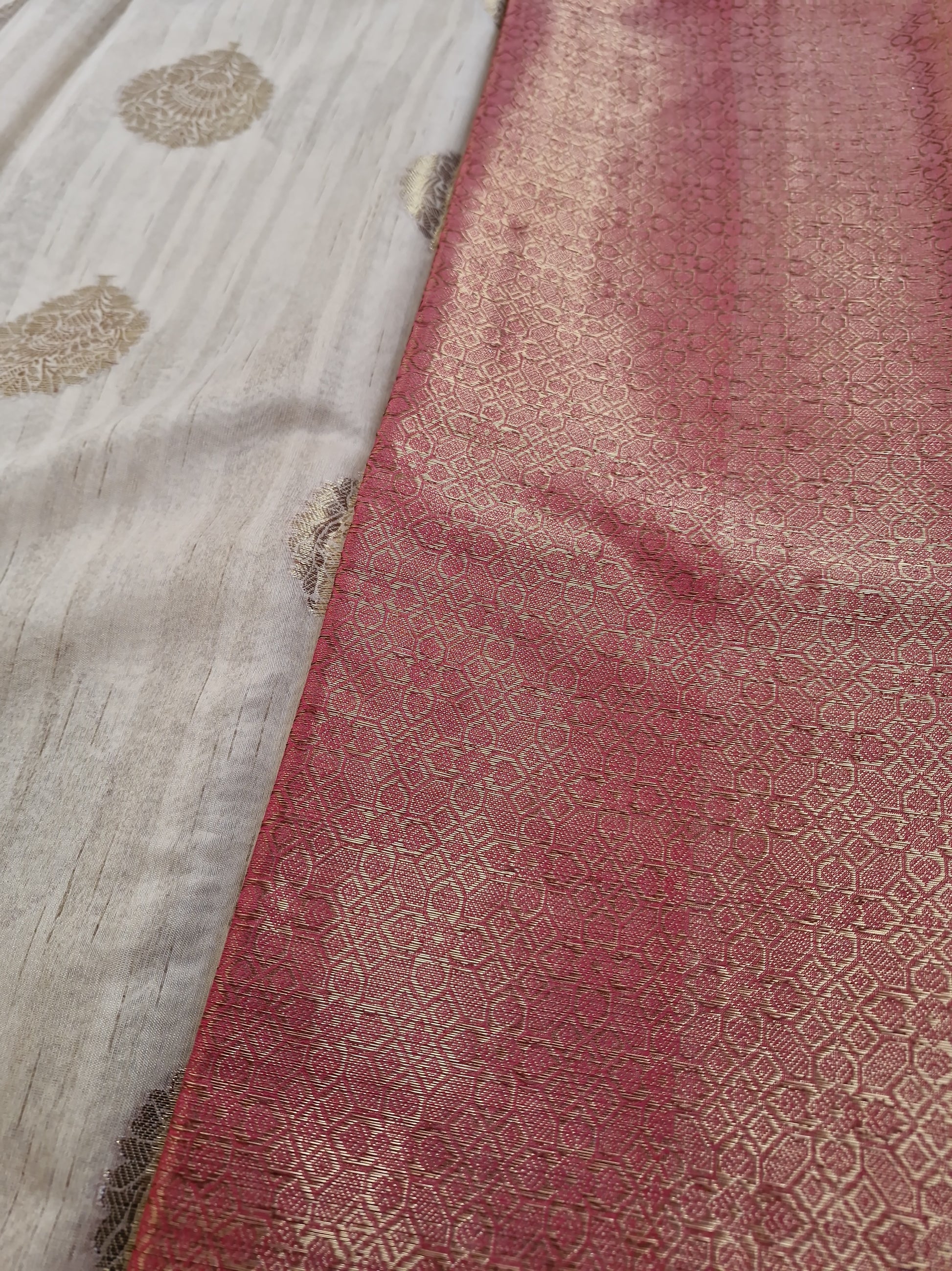 Beautifully adorned Tussar silk saree with intricate woven motifs that reflect the richness of handloom tradition.