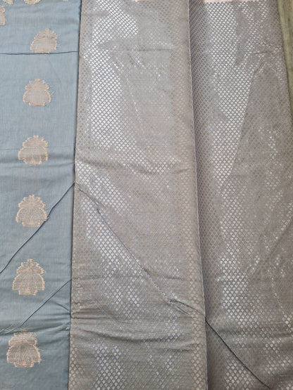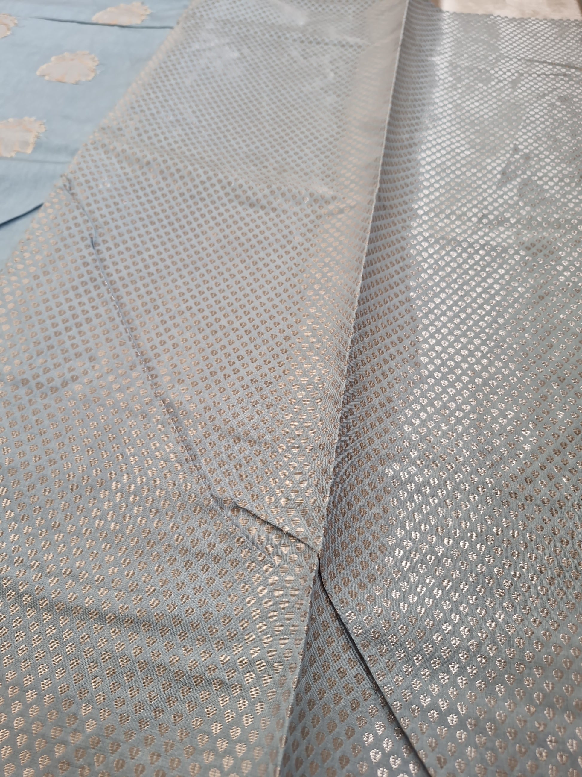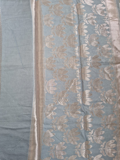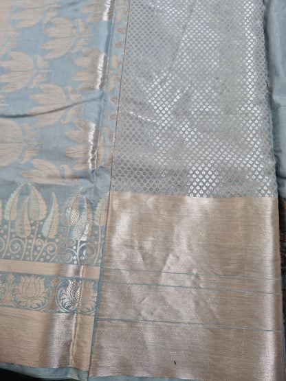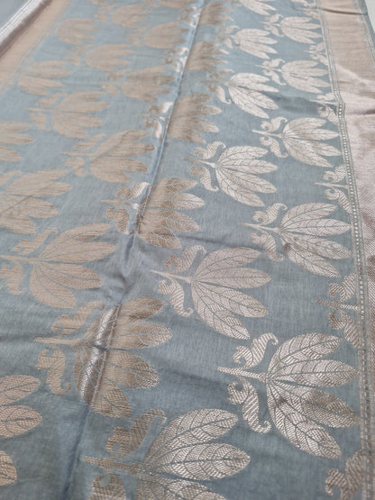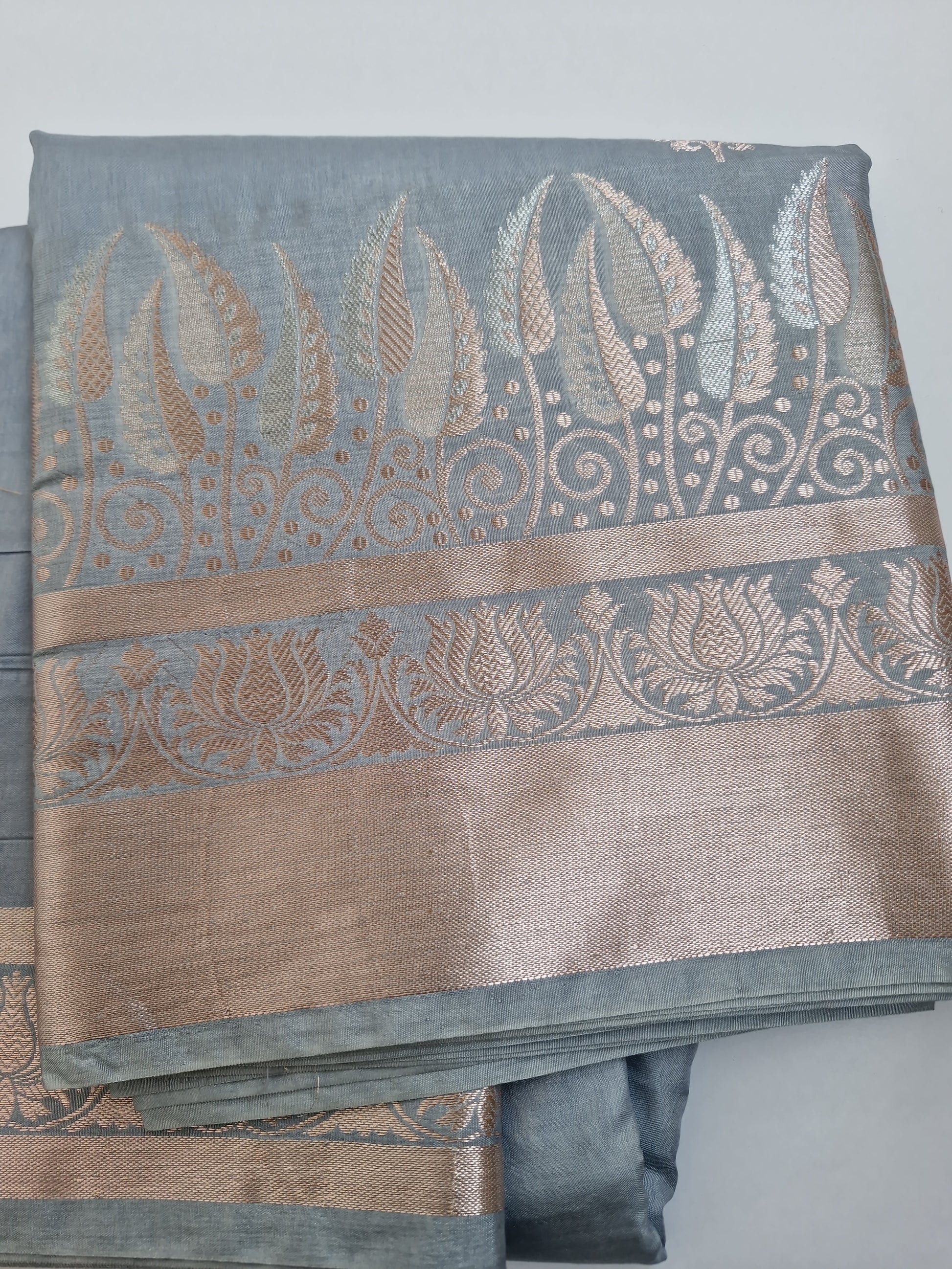 - Border & Pallu: Intricate lotus and leaf zari weave